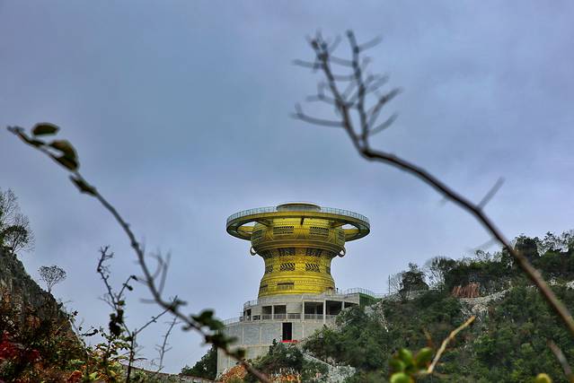 栈道建在红水河岸边海拔702米的一座山峰上,直径长达35.5米。