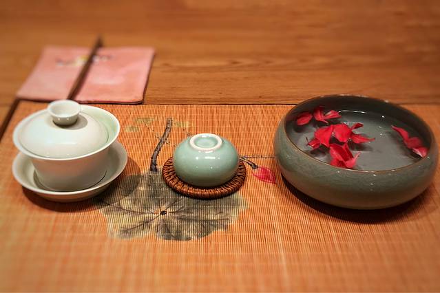 把菜一样一样的放进去,好有成就感,还没吃,心里就已经有天下唯我独尊的快感。新鲜的菊花一片片飘浮在过桥米线的浓汤上,既赏心悦目又有药用价值。