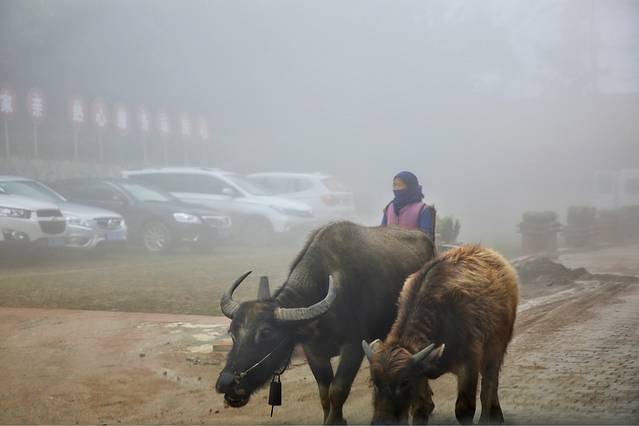 越往景区走能见度越低,只能看见前方十几米处,不要说观赏两旁风景,似乎都在担忧安全问题了。老司机说这是他开车走过的最迷茫的道路,一直跟着导航走,真不知开到何方😨