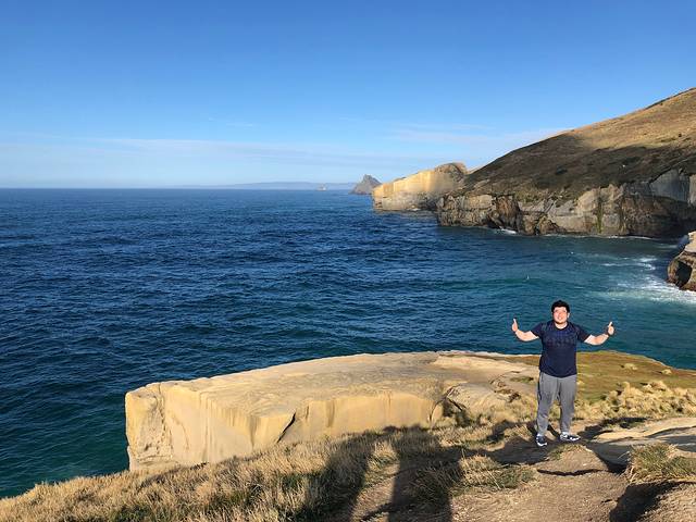 海滩隧道离达尼丁7.5公里。退潮后,从停车场绕到海滩有1.2公里,看伸出海面的巨大岩石。下去轻松上来累。