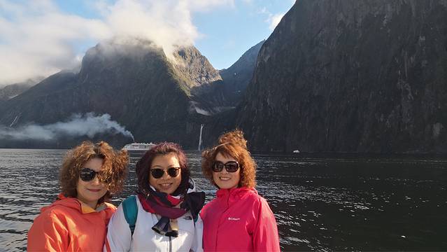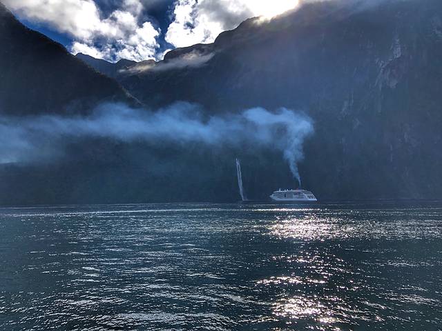 由于预定了10点半的米尔福德峡湾巡游,我们计划去程直达峡湾,回程再逛路上的景点。临近峡湾,天空已完全放晴,太棒了!