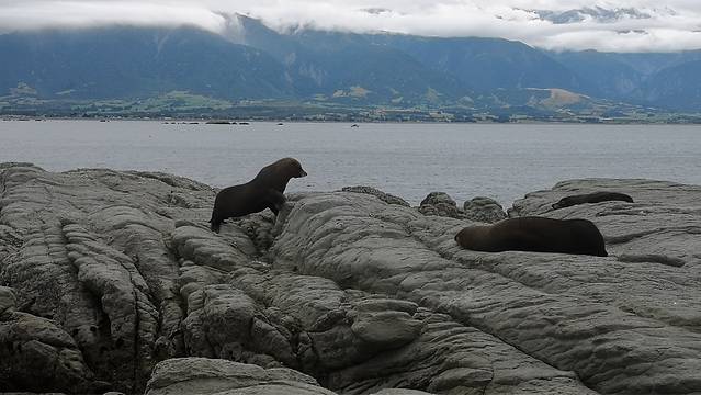 一路聊着天就到了凯库拉,凯库拉名字的由来就是毛利语吃龙虾的地方。顾名思义,这地方盛产龙虾。凯库拉是我最爱的海边的小镇,雪山和大海的完美集合,加上丰富的野生动物