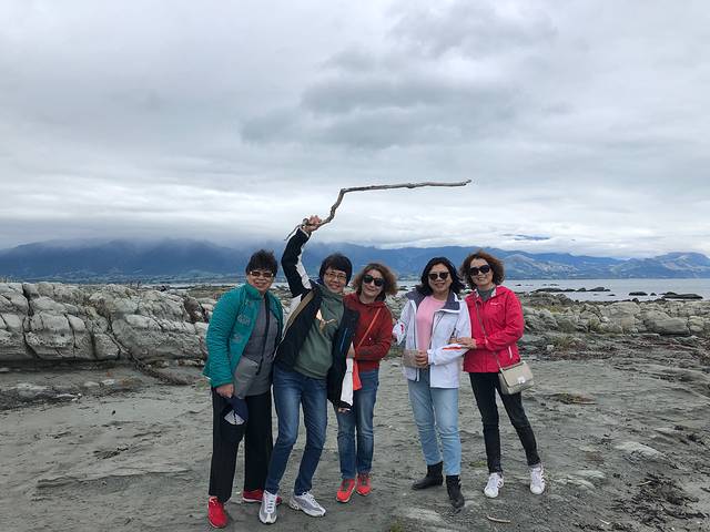 我们到凯库拉,天已渐渐转好,好开心的。赶快女同胞们在凯库拉海边留影。