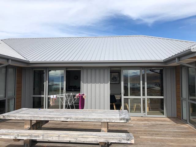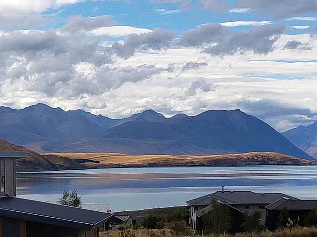 从民宿拍到的特卡波湖,蒂卡普湖因湖泊色泽充满神秘之美而闻名,由于南阿尔卑斯山脉的冰河融解注入湖泊的过程中,冰河中的岩石碎裂成细粉状,因此湖水色泽呈现带有乳白色的湛蓝色。