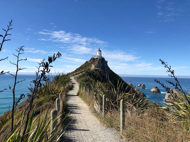努盖特角灯塔离但尼丁有点距离,大概45分钟车程,在但尼丁以南。去蒂阿瑙不顺路,我们还是绕道也一定要来!