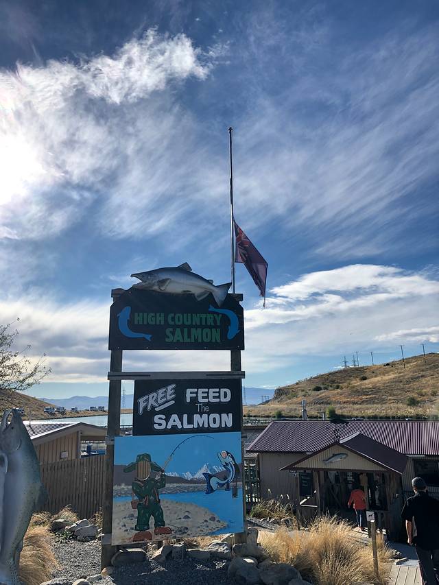 接着往南开的路边有一个三文鱼养殖厂,那里的三文鱼又便宜又好吃,名字叫High Country Salmon。我们在这里简单的吃个午饭