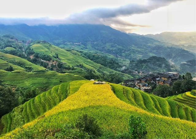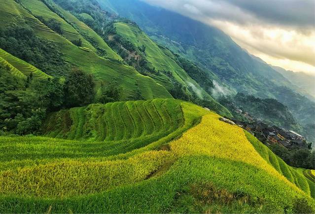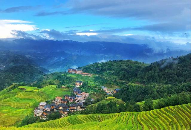 2018年5月份已经来过龙脊梯田,那时候刚插秧不久,能看到绿色的秧苗和镜面般的梯田,很美!