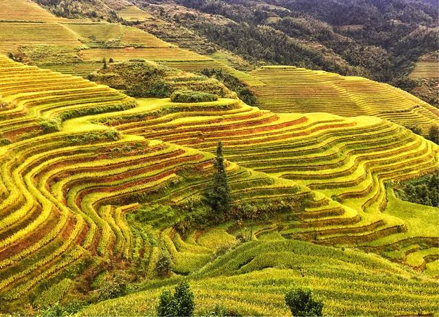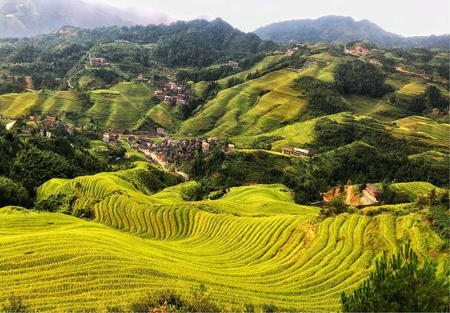 龙脊梯田地处海拔1916米的深山,梯田海拔最高1180米,最低380米,面积70.16平方公里,共分为平安北壮梯田和金坑红瑶梯田两个景区。