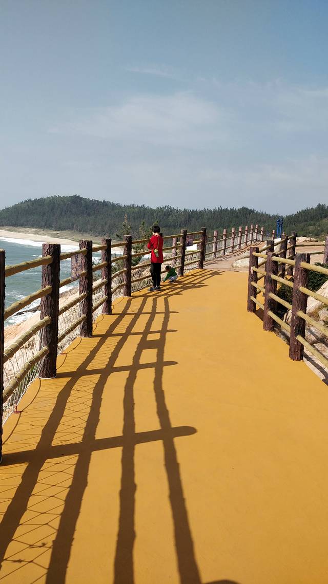 没想到去双月湾的路这么难走,比较曲折,且只有双车道,会车要很小心。过了30多分钟后,到了一个大酒店,一问房价,要220元。和妻子一商量,决定还是继续往前走。小家伙却不愿意了,哭着吵着要留下,好不容易才哄上车。再往前走,走了几公里,却没有看见一处民宿或者酒店,儿子在哭闹,搞得妻子也在发牢骚。好不容易查询到万科里面有酒店,要开车进去的时候,门卫还不让进,说是要让酒店发邀请码才能进去。我们实在不想折腾,咬咬牙,决定往回找原来的酒店。好在运气不错,只是换了对向车道,万科对面竟然有不少的民宿酒店,我们在最近的一家住下,房费只用120元。小家伙倒不认生,看到酒店阿姨在吃小水果,他也要吃,惹得阿姨好开心,送了几个给他吃。上到房间,我直接趴在床上,这一路上开车是真累了。小家伙倒是挺精神的,洗完澡在床上又蹦又跳的。还好是自驾游,行李什么都方便带,我们还特意带上了儿子的洗澡盘,没想到第二天帮我们解决了一个大麻烦。大家洗完澡,看一会电视,就睡觉,却睡不觉。因为,我们已经有两年多没有在外面住过,而且要命的是:我们的房间正对着马路,晚上那些大货车从这里开来开去,一直没有停过(不知道是不是和当地白天不让走大货车有关),实在是吵得不能入眠。在这里也给大家提个醒:在外面住,千万不要挑在正对马路或者海景的房子,太吵。晚上睡睡醒醒,到了天亮,6点,小家伙醒了。没撤,看来觉是睡不了了,那就收拾行李出发吧,去双月湾观景台。