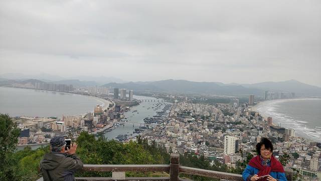 吃了早餐后,导航到观景台。好家伙,刚一开车,就睡觉了。没一会,车子直接开到了山上,妻子抱着熟睡的儿子,只能待在车上。我自己跑到了观景台,在这里,双月湾一览无余。只见海岸线分布在半岛两侧,尤如两个半圆的月亮,故得名双月湾。双月湾一面波涛汹涌,另一面却风平浪静,别有一番风味。尽管是早上,还是有游客络绎不绝的到来,当然,主要的还是老年人。看了一会风景,回到车上,儿子仍未睡醒,只能开车去海龟培育基地。觉得很遗憾,观景台那么好的风景,妻儿居然不能看到。