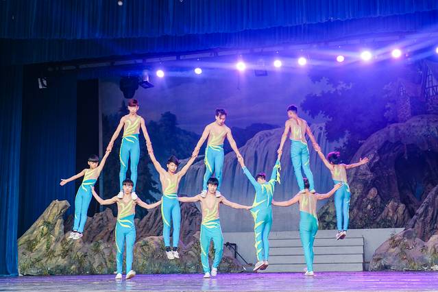 小剧场里,精彩绝伦的杂技正在上演,演员们柔软而灵活的向观众呈现速度与力量的美。
