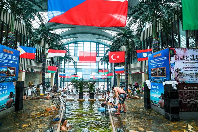 室外温泉分为中心温泉区、世界温泉文化区、温泉康养理疗区、园林温泉区、空中温泉等。