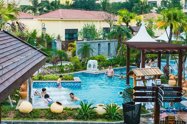 这座占地4万余平方米的海洋温泉,有着“南海第一泉”的美誉,海洋泉水源自大海深处,经年不息,泉井自喷高达11米,出水口温度常年保持在78-83摄氏度,水质清澈透明,富含钾、钠、钙等30多种益于人体的微量元素及矿物质,是十分罕见的优质海底温泉,具有良好的纤体、美肤、活血等保健功效。