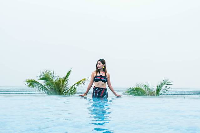 喜欢拍照的朋友,一定不要错过这个位于中心地带地势最高处的无边界观海池,靠近大海的那边视线全无遮挡,海、天、池水连于一线,各种层次的蓝汇集在一起,超级壮观,