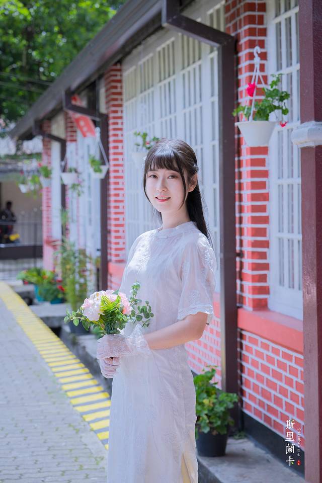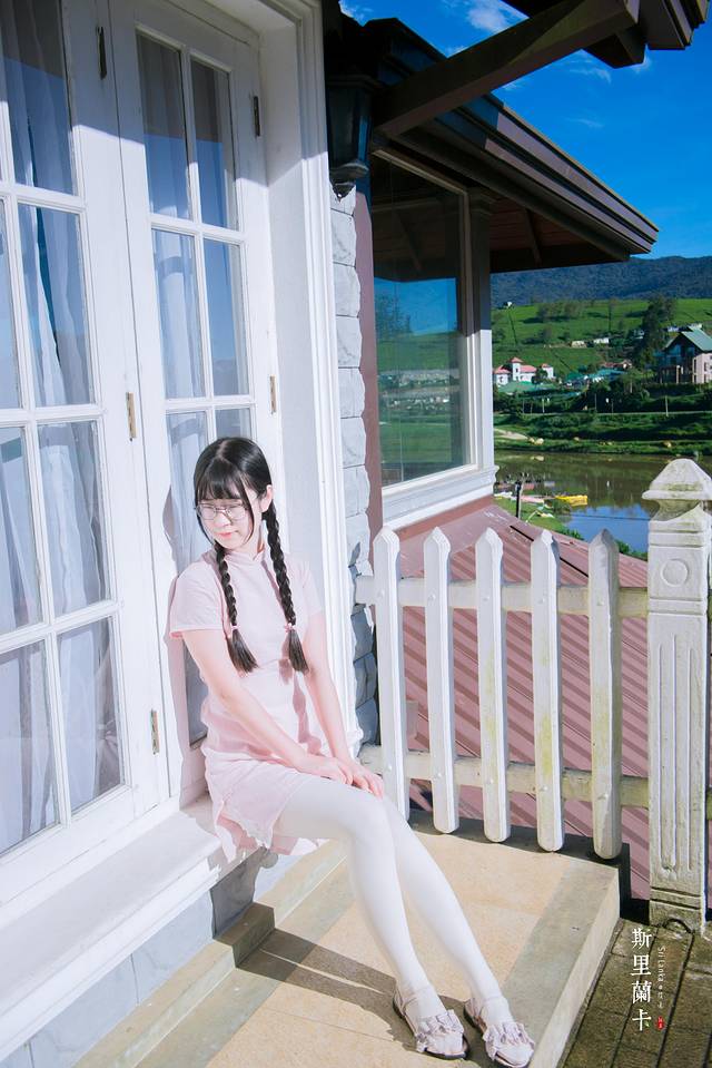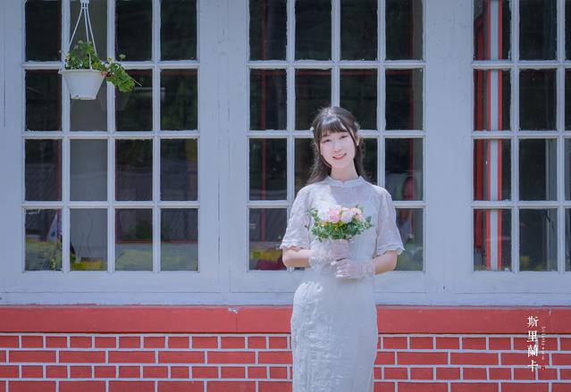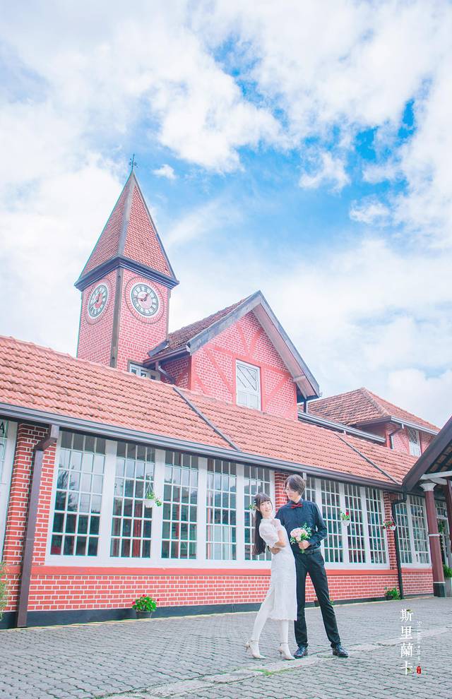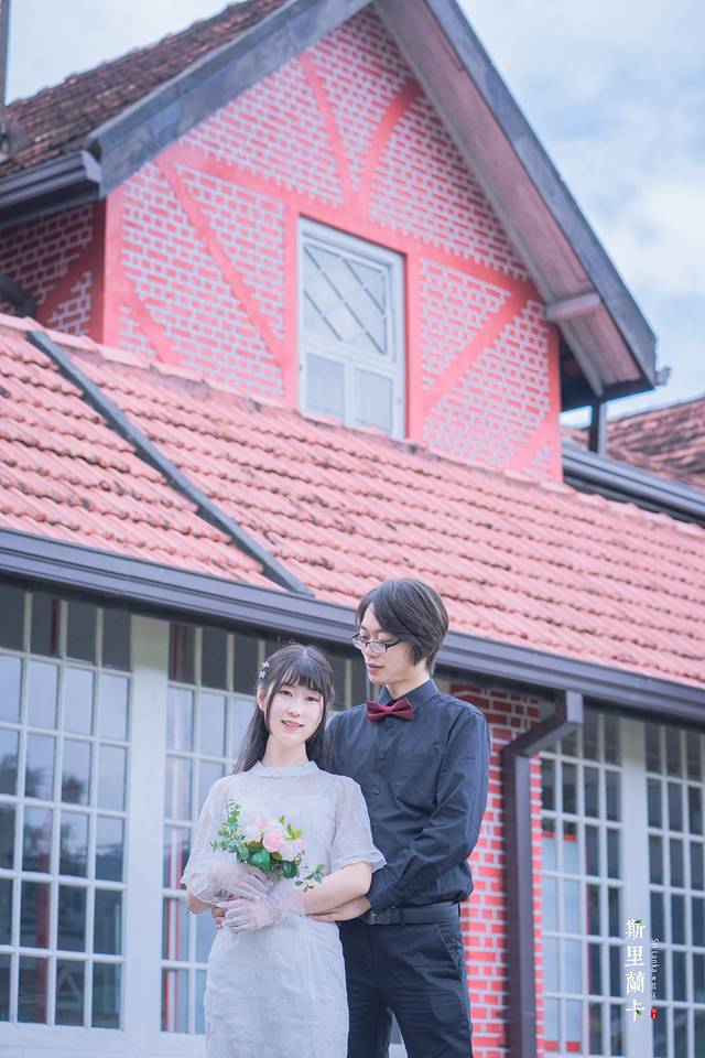 一格一格的红墙,白色的窗框,尖尖的屋顶,满满的英伦风情让人很是喜欢。我们不由分说便拍起照来,今天穿的是中国风的改良旗袍,给爪子搭配黑色衬衣红领结,色彩的搭配来到这里是意外的契合。