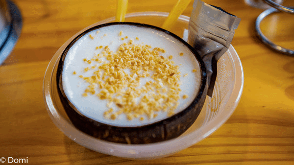 最喜欢的是这个椰子冻,清凉爽口顺滑,回到夏天的感觉真的超赞,椰冻上面再撒上一些金黄酥脆的椰立更加好吃。