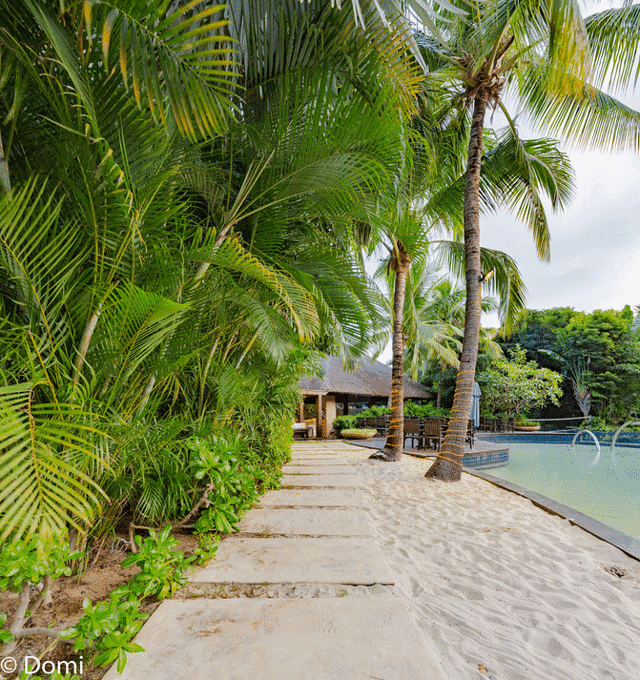 舒展的大堂空间建设在两层楼高的坡度上,以至于我经常性的忘记出门时而非下楼。一楼的的泳池、椰林海滩、柚木色的装饰通透自然,透漏着热带的舒适气息。