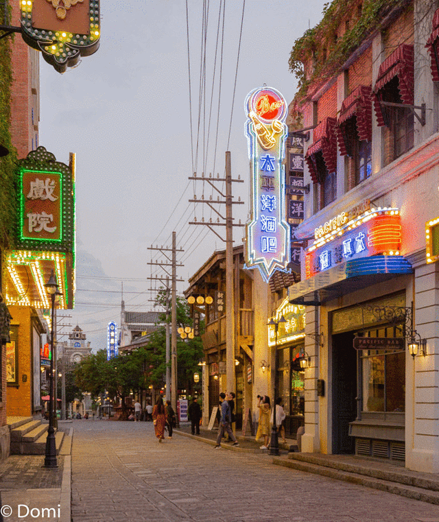 随性的在这一条条街道上闲逛,看着中外建筑风格交流辉映,感受着时代性的故事兴衰,偶尔遇见一两对拍婚纱的新人,然后迎来夕阳近黄昏的天空。