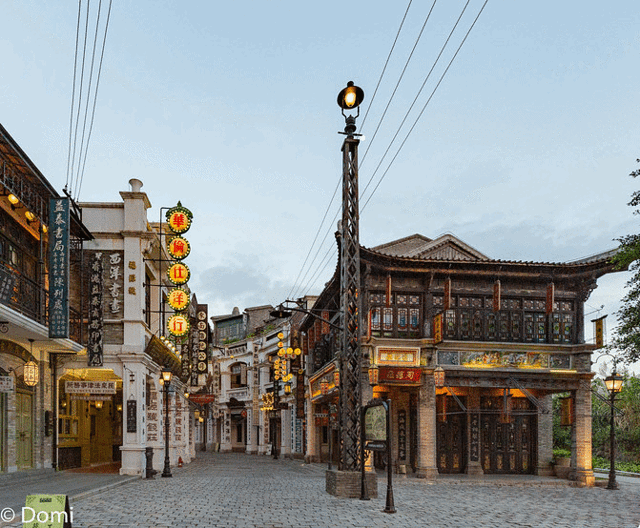 1942风情街,以冯小刚电影《1942》中出现的重庆街道为蓝本,91栋建筑集合了上世纪三、四十年代长江流域4大城市重庆、武汉、南京、上海等地典型的建筑风情。其中20多栋建筑完全按照老照片复原,包括曾为蒋介石官邸的尧庐、西山钟楼、重庆国泰戏院、上海荣光大戏院等等,每一栋建筑背后都有一段流逝的故事,令人追忆和回味。