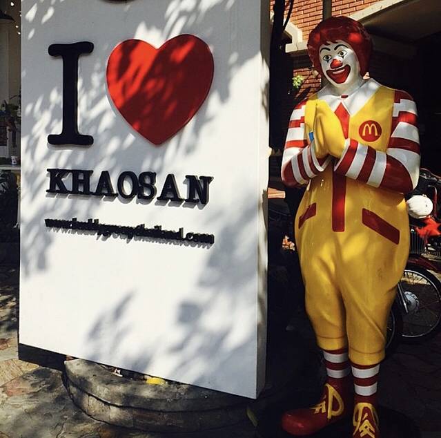 在考山路与双手合十的麦当劳大叔一起拍照:如果你到考山路了不跟麦当劳大叔拍照,就是枉到考山路走一遭。因为这里的麦当劳大叔和别的地方的不一样,由于他双手合十欢迎所有的外国游客,而被认为是另一个独特的招牌,到泰国了不得不拍!!
