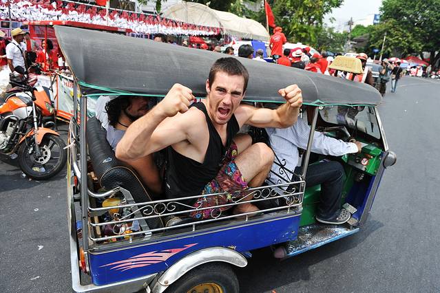 坐摩托车的士:摩托车的士是泰国独有的。如果要去的地方距离很近,就可以叫摩托车的士。外穿一件彩色小背心以作识别。大家可以试试看。在曼谷坐摩托车的士的兴奋不低于坐嘟嘟车哦!