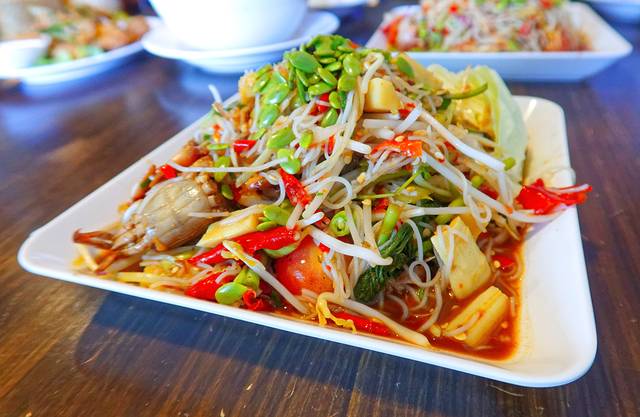 吃辛辣的臭鱼烂虾版青木瓜沙拉:到泰国要吃木瓜沙拉,尤其是喜欢吃辛辣的人。木瓜沙拉有很多种,包括泰式木瓜沙拉、螃蟹木瓜沙拉、臭鱼烂虾版青木瓜沙拉。如果大家去泰国,我推荐大家尝试吃辛辣的臭鱼烂虾版青木瓜沙拉,这很辣,很好吃!