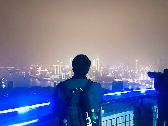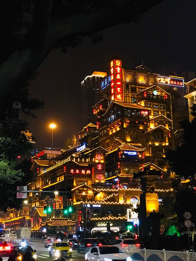 晚上我们两人又赶去洪崖洞看夜景,这也是网红打卡胜地,夜景很美,也很有意思,还有很多酒吧歌手。