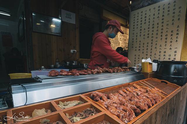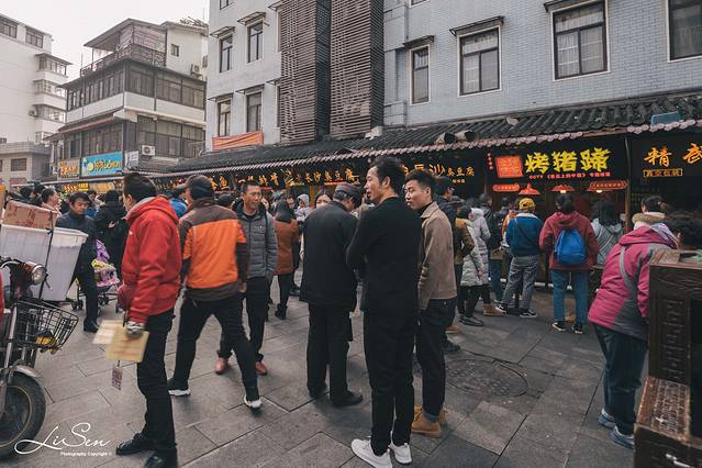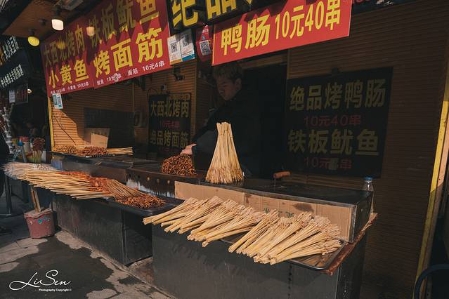 这样的街道往往打着当地名小吃的旗号,卖着大众都爱的烧烤串串、臭豆腐、烤鱼、炒栗子等常见的小吃,日复一日、年复一年地招揽着一批批游客来此。