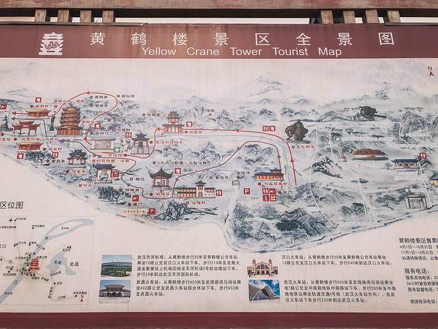黄鹤楼景区的示意图,如今的黄鹤楼门票已经涨到了80元/人,而许多当地的朋友也都说黄鹤楼公园里没什么可玩的,不需要进去,然作为游客,如此打卡地点若是有闲有钱还是可以进去参观一下的。