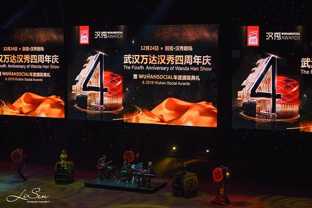 汉秀是万达集团斥资26个亿倾力打造的一场世界级水上大秀。由全球享负盛名的舞台艺术大师弗兰克·德贡先生亲自执导, 澳门 “水舞间”、 美国 拉斯维加斯 “O”秀、“梦”秀均由其策划导演。整场大秀揉合了特技、高空极限运动、舞台剧、柔术、舞蹈等多种表演形式。运用了高科技的舞台设备、世界演唱会级别的声光电设备、全球第一座可移动/升降的座椅设施,是顶级科技与演艺的完美呈现,也是来到 武汉 必看的世界级水舞秀。圣诞来此,正值汉秀四周年庆典,庆典上还展示了酷炫的黑科技秀、现场的乐队表演,令人赞不绝口。