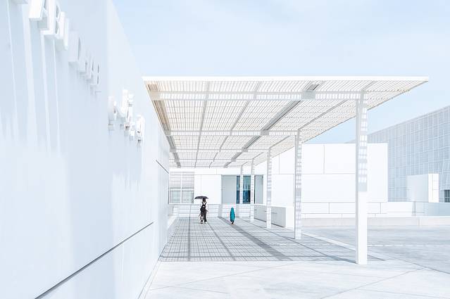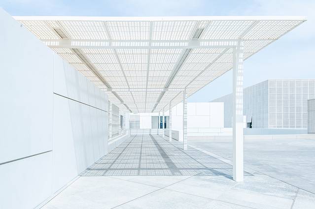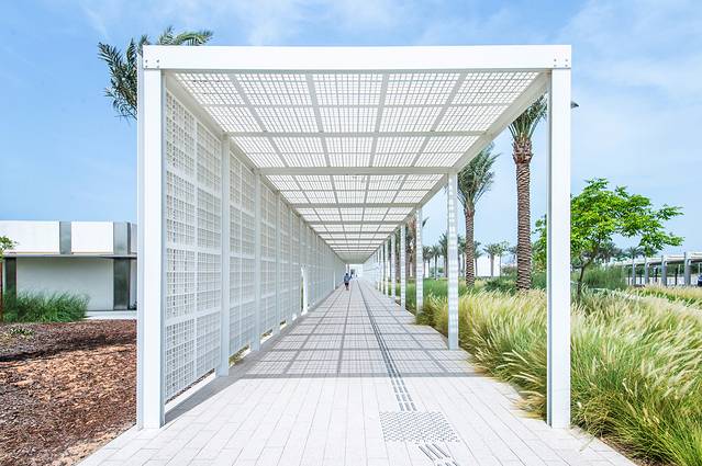 阴影的格子可以在炎热的夏天让人产生一定凉爽的感觉(也可以做免费的摆渡车到达门口)