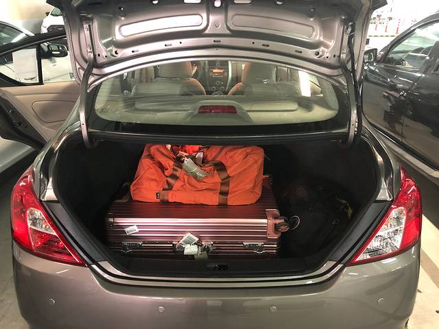 租了一辆日产阳光,6天,算上一些保险什么的,一共花了1080人民币左右。超级超便宜的。而且是新车,仪表盘上只有30公里。后备箱空间还是很大的。