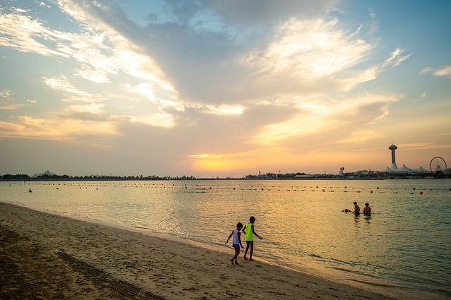 来海边城市旅行,沙滩肯定是要来的,滨海沙滩公园不大,但是蛮好玩的,成年人来玩两三次是没问题的,除了常规的游玩项目,在海上还有一个浮堡,可以游过去在上面玩,如果你是勇士不怕晒,我觉得玩一天也不是问题。