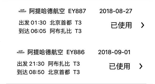 飞行时间是8个小时,我们是从北京飞阿布扎比的。