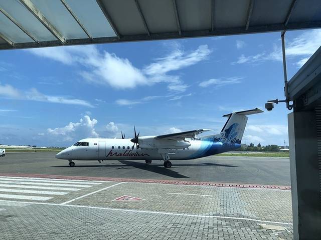 回到酒店后,酒店就用车子把我们载去码头了。这里插播一个小诀窍。尤其对我们这种在机场岛住一天的小情侣很实用。就是在住酒店的前一个月发邮件给柏悦的经理(用柏悦哈达哈官网的客服邮箱就好)告诉他们你prefer的上岛时间,告诉他们你到达 马累 的时间,住的酒店,然后要求第二天最早一班飞机上岛,我们自然是希望越早上岛越好,尽量延长在岛上的时间把好吧又暴露了穷屌丝特质…这样一来,酒店就安排了第二天早上最早的一班飞机,11点的内飞。我们9点半的时候到达了国际机场(内飞和水飞都是在国际机场哦! )