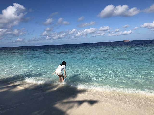 吃完早饭后老公提议去这里的海滩看看,本来是一百个不情愿的,想着这个岛这么脏乱差海滩有什么好看的。,但是事实证明我错了……酒店步行2分钟,就是海滩, 马累 机场岛的海水就已经很清澈了,当然,是没有办法跟六星岛比的,但是比 三亚 和随便一个国内的海滩和海水都美上不少。这样的海水和沙滩怎么说呢?跟 泰国 的 沙美岛 很相近,当然,个人认为 沙美岛 已经非常不错。在沙滩上拍了一些照片之后就马上会酒店了,不是因为不想多玩,是阳光乡镇的太刺眼了,刚吃完早餐没有戴墨镜下来ZZZ可是看到这样的景色,让我已经对柏悦越来越期待越来越渴望啦!!
