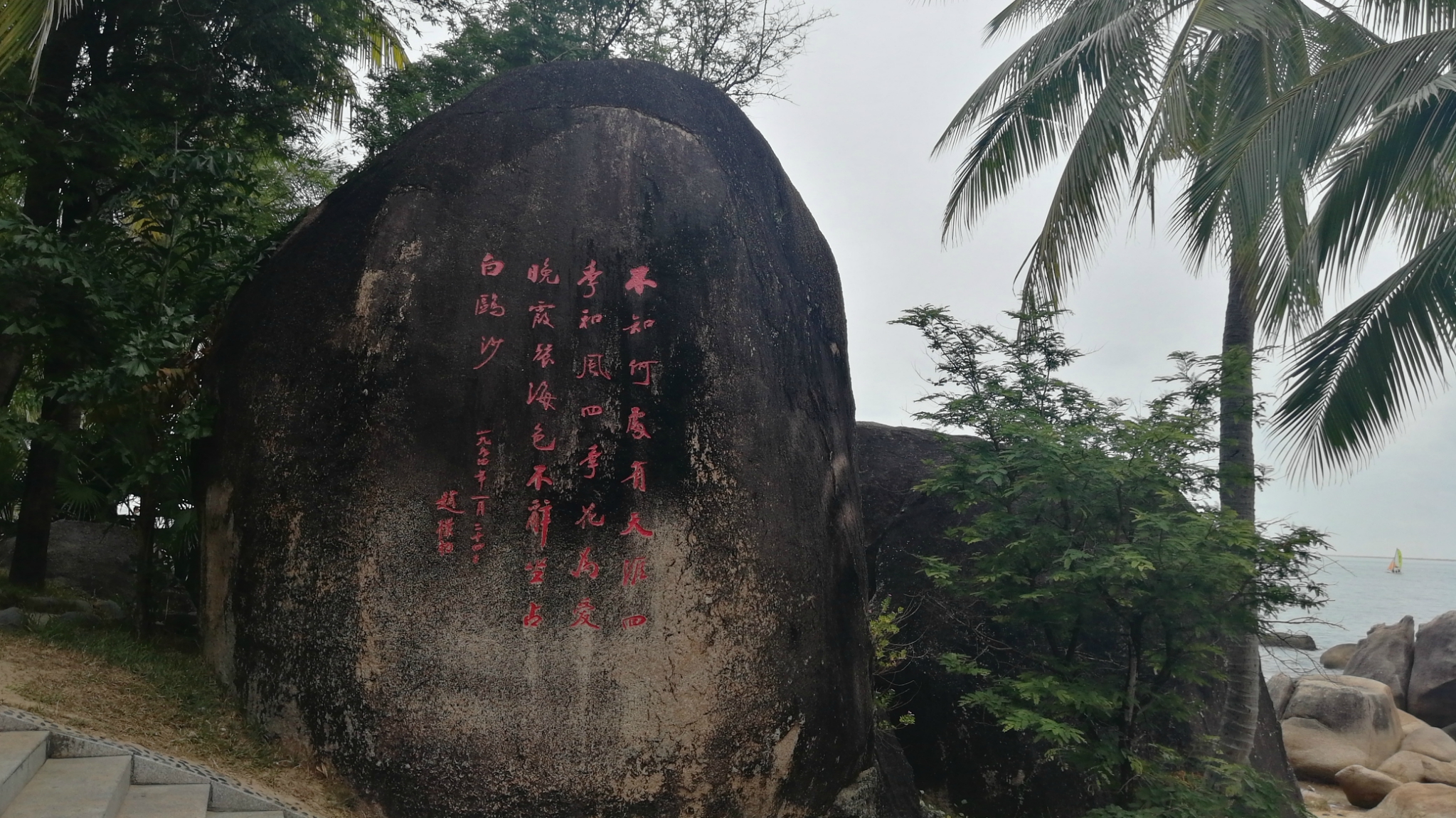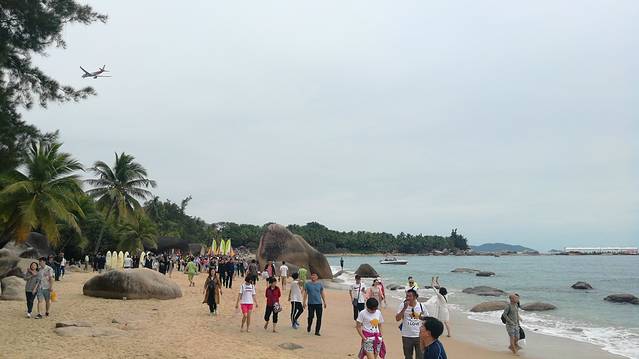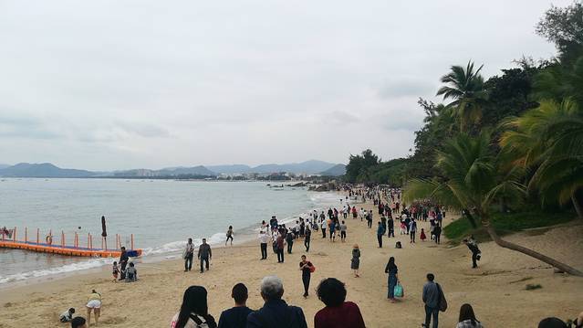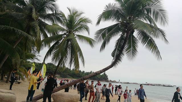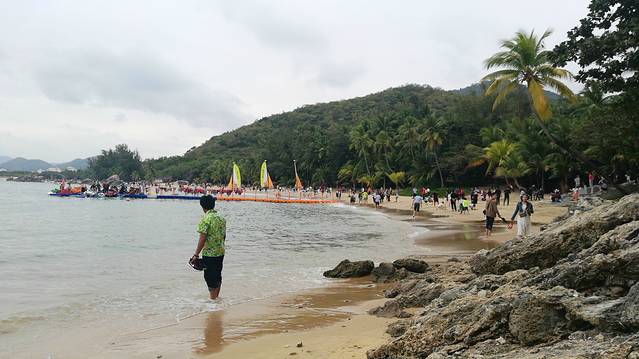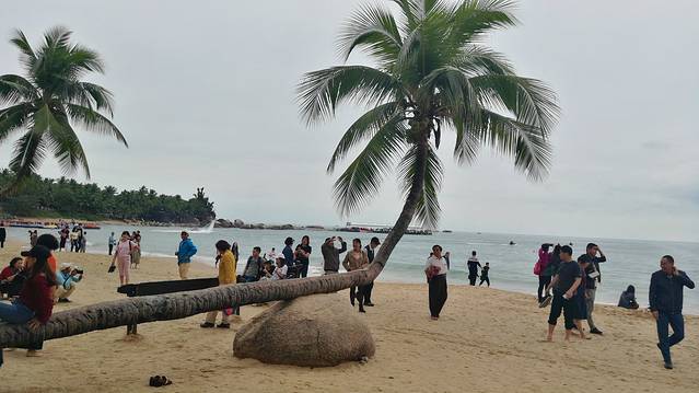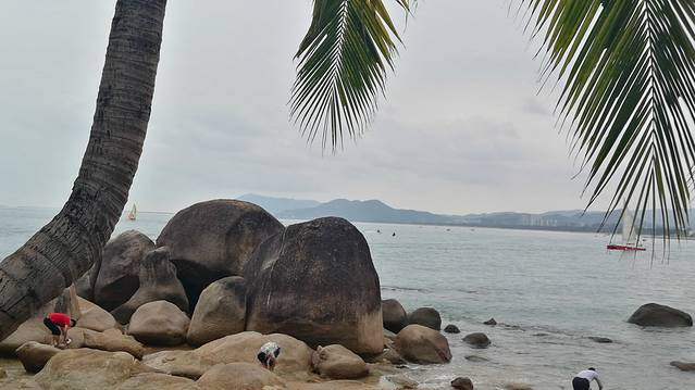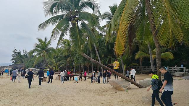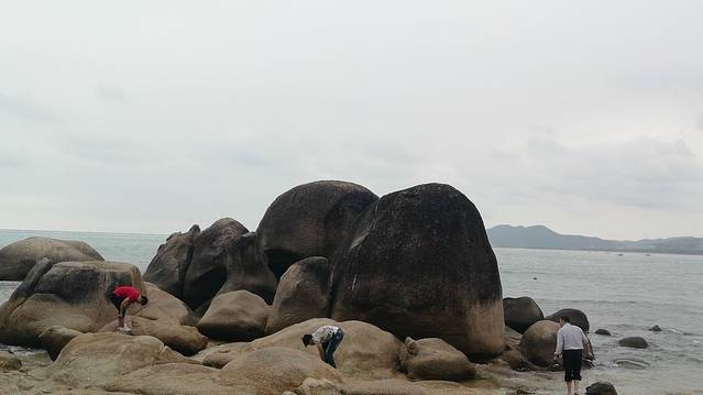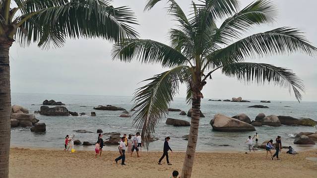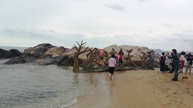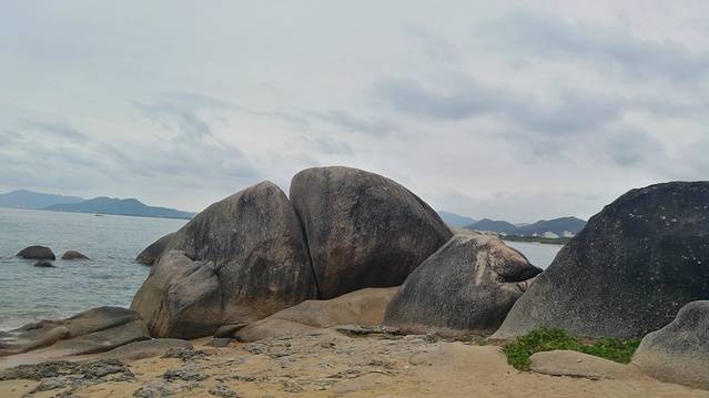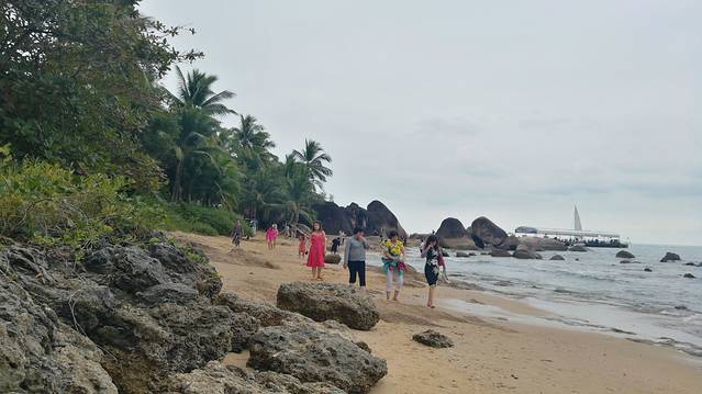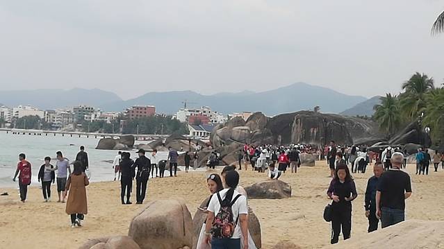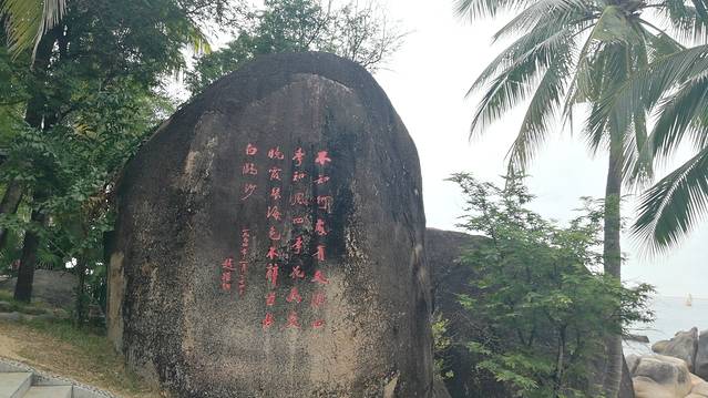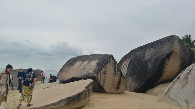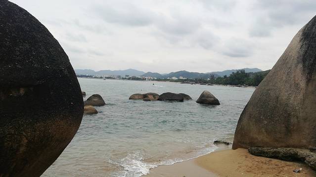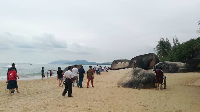 2、也真是的,人就是这样奇怪的心理,三亚多少好风景不能拍照,还就要赶着到那两块石头跟前拍照,黑乎乎的,不知道有啥好。且导游说,只能和天涯石合影,不要与海角石合影。其实天涯和海角是一块石头的两个面。说到底竟然只有一块石头,值不值呢?谁知道?
