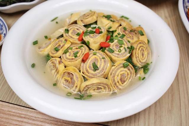柒食家的蒸如意蛋卷里面放了肉沫的,但是放在上面那些大鱼大肉中间,它就突然变成了半个素菜。带小孩子去的时候这个菜就一定是必点了,营养又好吃!