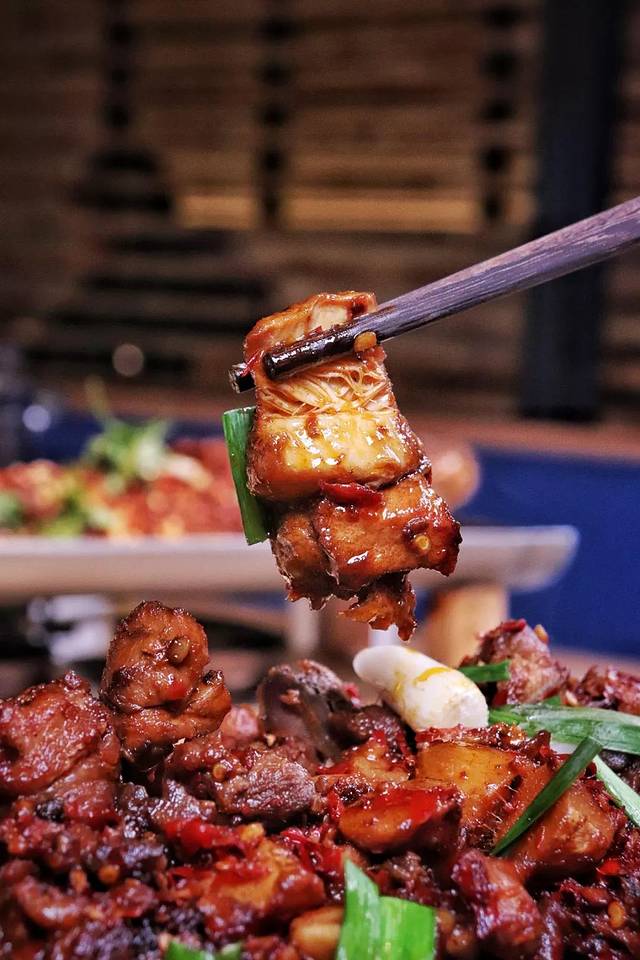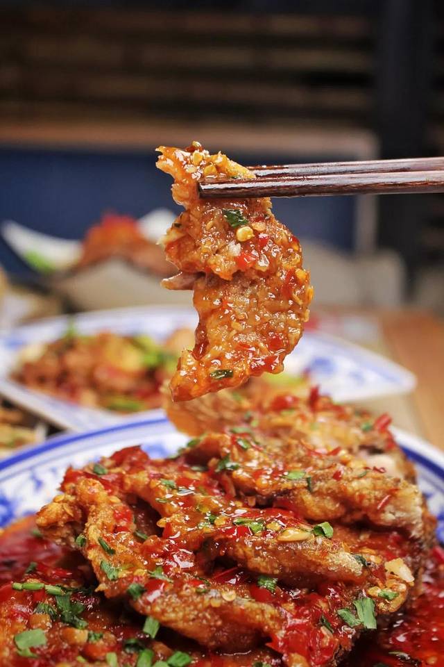贵阳人平时的家常菜都不怎么吃辣子鸡,但是招待客人或者过年过节的时候就一定不会少。柒食的辣子鸡用的散养的走地鸡,鸡肉一点都不老,每一块都可以撕开吃。