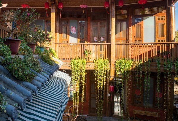 进入客栈,小院的装饰、配色风格很暖,亲手打造客栈的老板娘看得出花了很多心思,院子小池里面养着很多的 小金 鱼,勃 勃生 机。