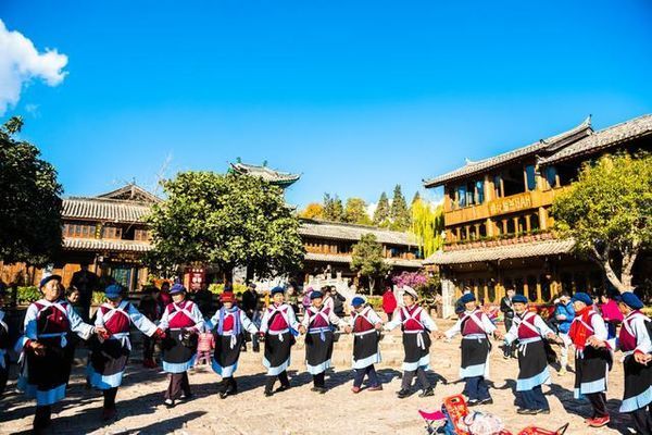 清晨的 丽江 古城四方街广场经常可以看到纳西族老奶奶们跳着纳西族舞蹈