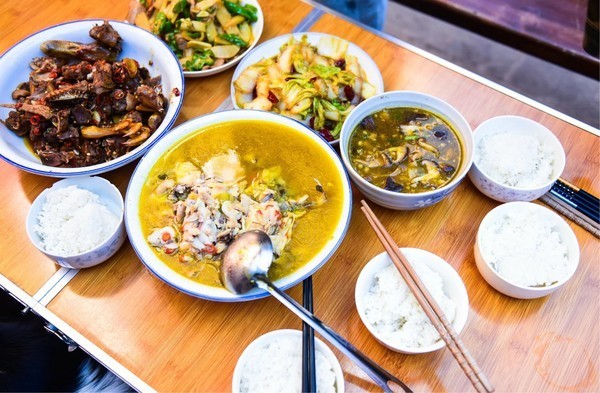 住在客栈的小伙伴们很多都是一觉睡到快中午菜起床,刚好这天来住在这里的客人都是 湖南 的于是客栈老板娘小七给我们准备了一桌子的 湖南 菜,吃的小伙伴们都大呼过瘾