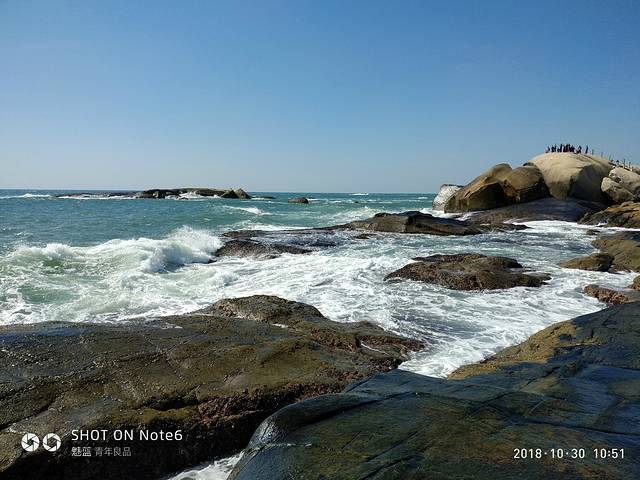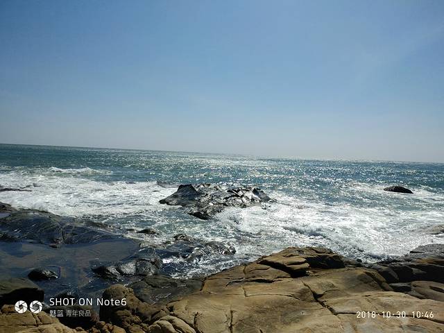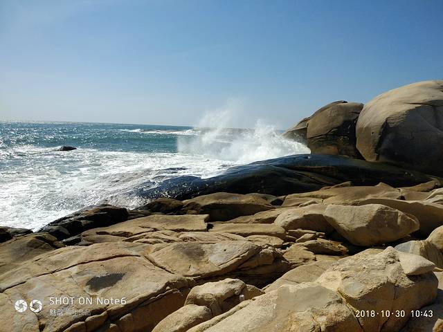 石头公园,并没有开发出来,比较原始,也就是更有意境,真实感,交通也不是好, 下车后,需要走十几分钟,而且是土路,比较难行,可一下到海边,那狼王出世的景头再现了,波涛阵阵,狂风怒吼,直冲云霄,在阳光照射下,刺眼并泛着晶莹,湛蓝湛蓝的海水,格外清晰,海水汹涌般拍打礁石,反弹出来,四周溅出,太神奇了,这鬼斧神工自然景观难得一现。站在礁石上,静静的呤听与欣赏不同交响乐混响,这是人间仙境。不同形式,不同方位,不同角度,奇形怪状,张牙五瓜,或立,或躺,或睡,或倚,或看,在光线 与海水的印衬下,更栩栩如生,活灵活现,猴王你在哪里了。 阳光疯狂的肆意印在身上,根本享受不了,看过了, 就不后悔吧。