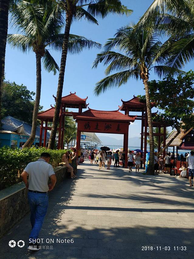 十几分别就到达小岛,那欢迎的标语随风舞蹈,门楼式的牌坊诉说小岛的缘由,来听听你的心声。小岛并不大,全部环海,有人工步道,也有电平车路,但人工步道有限制,不让你走全,电平车可以,自己选择。小岛环境美,、绿化更美,你随意置身于纯天然大自然之中。紧临小岛就是什么五星级酒店,也是唯一一家酒店,私人式不让进。整个岛上休闲溜达也不过3小时左右,看风景,赏人文,话海边,观天象,不乏雷同。定定的住上一晚,也许才是。