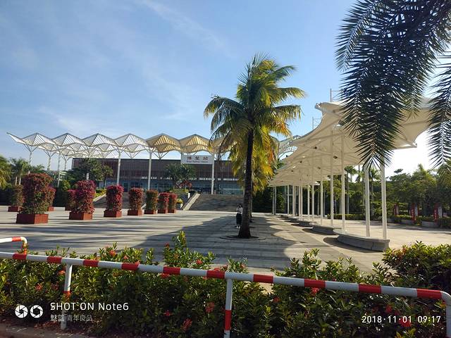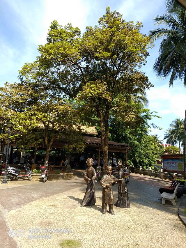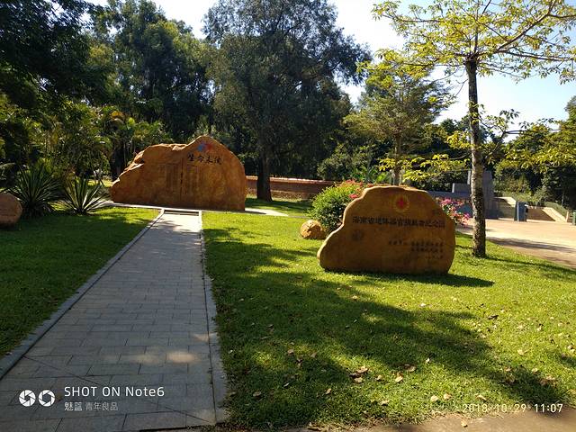 准备去海口博物馆,因时间问题,改去金牛岭公园,在火山口中途下就到了。一进门就是标志性五彩金牛形状,异常有范。公园面积不小,环境不用再说了,一个字,好,妥妥的。沿步行路,到处是景,有休闲的亭子,小椅,林荫小道,宽阔的遮阴林,有已荒谬的动物园,那里面清凉而又安静 ,太可惜了,还有渡海战争纪念碑,都值得去回味的,思索的。