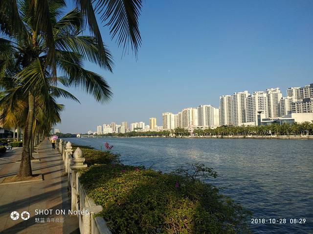 所住地方在海口海甸岛,阳光水岸,最美的区域,最热闹的地盘,海南大学,钟楼骑楼,白沙门公园,海甸溪悄悄流过,那幅幅美景就在身边一样。下飞机从3号门出来直走就是公交车站,那和谐的太阳,让我想说爱你不容易,脱 脱,脱,冬日下你在北方的感觉是什么?有K4路,21路,21路转车才到,不走太多路,但时间长,K4直达,但需要走点路,在人民桥下,导航就可以了,省时间的,因人而异。坐在公交上,那一扫而过风景,那侵入肺腑负离子,那笔直高大而带有绿意田园风格图画,这是城市不,第一次来的我太惊奇了?真正意义的城在绿中,绿在城长,犹如我去杭州一样的,只是这太可怕的。生活在这里面的人们太幸福不,目不转睛的看着外面,久久不收回。转车加之等车,近2小时才到。办理入住,询问下就马不停蹄的前往海南大学东门,近在咫尺,楼下停有很多共享单车,择不荒食弄一辆,骑着小毛驴沿道路前行遇人民桥右拐直走就到。海口共享单车到处都是,本地人也骑,车水马龙壮观一刻,危险与激情共存。