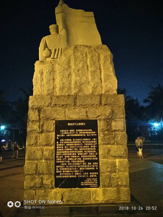 吃过,歇斯底里休息,沿导航拐向人民路直达白沙门公园,看看夜晚的海边。人民路上灯光暗淡无光,时隐时现,对于我这个视力不太好,有点麻烦的,是个问题。好在习惯了,白沙门公园很大,夜幕下显得更清新雅致,温柔敦厚,不敢近观只能远视,沿公园漫步路到海边,那稀少的人群,幽暗的光芒,迷藏的鬼火时现,有点惊心。海水一浪接一浪,一波连一波,冲向你的脚下,沙滩上星星点点,一瞧就知是寻找。
