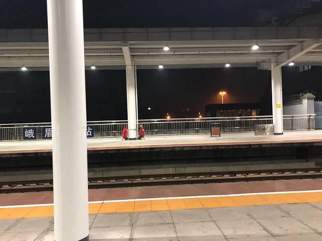 从成都东站出发,乘坐第一批去峨眉山站的动车,一个小时的车程,七点多抵达,天未亮
