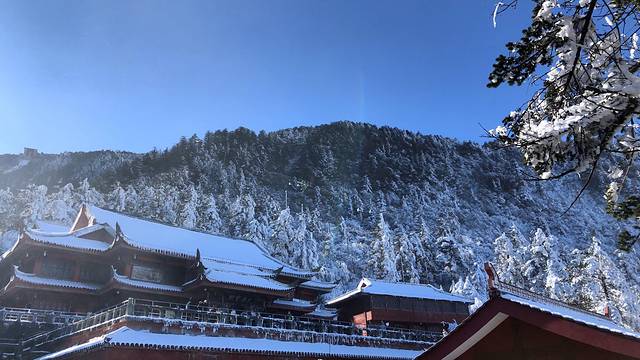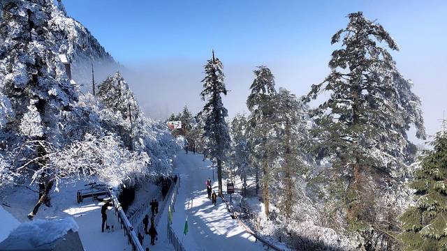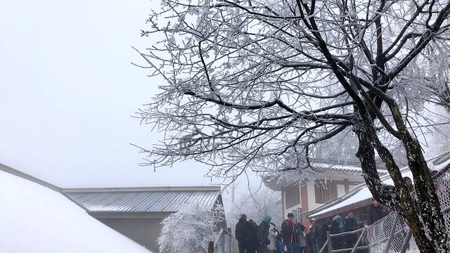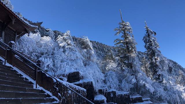 成都市区虽然冷,却没有雪,可是峨眉山已经被冰雪覆盖了