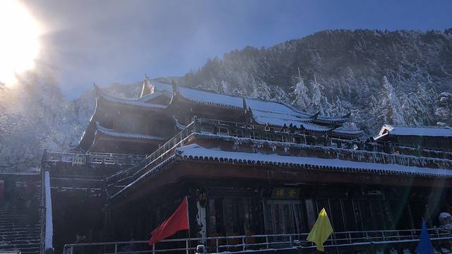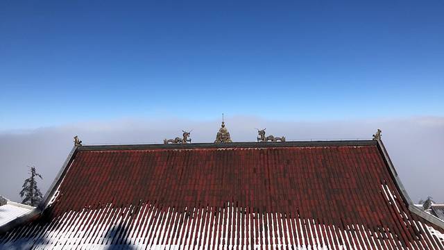 当我抵达接引殿时,太阳刚刚升到半空,艳阳与雪交至,让整个佛殿燃升其希望
